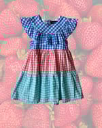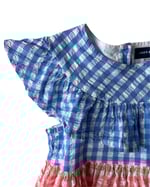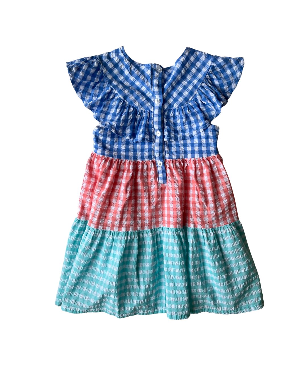 Three tiers of glorious gingham! Flutter ruffle collar dress from Andy & Evan. 100% cotton.