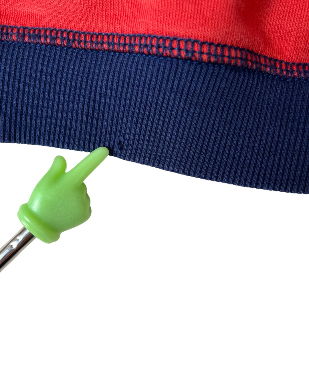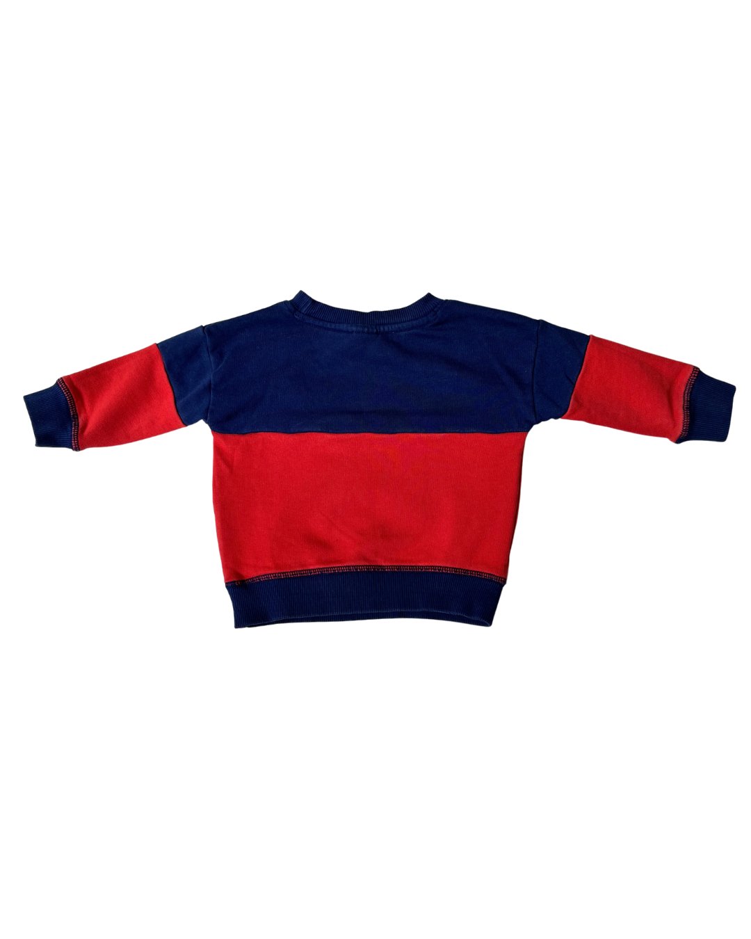 Sweet lil' color block crewneck from Hanna Andersson. Love this navy and orange combo! Tiny snag on front hem, see photos. 100% cotton.