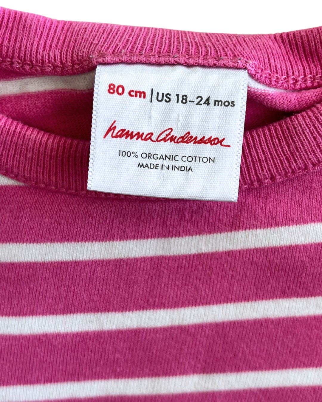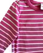 Classic striped long sleeve t-shirt in a lovely pink color from Hanna Andersson. 100% organic cotton.