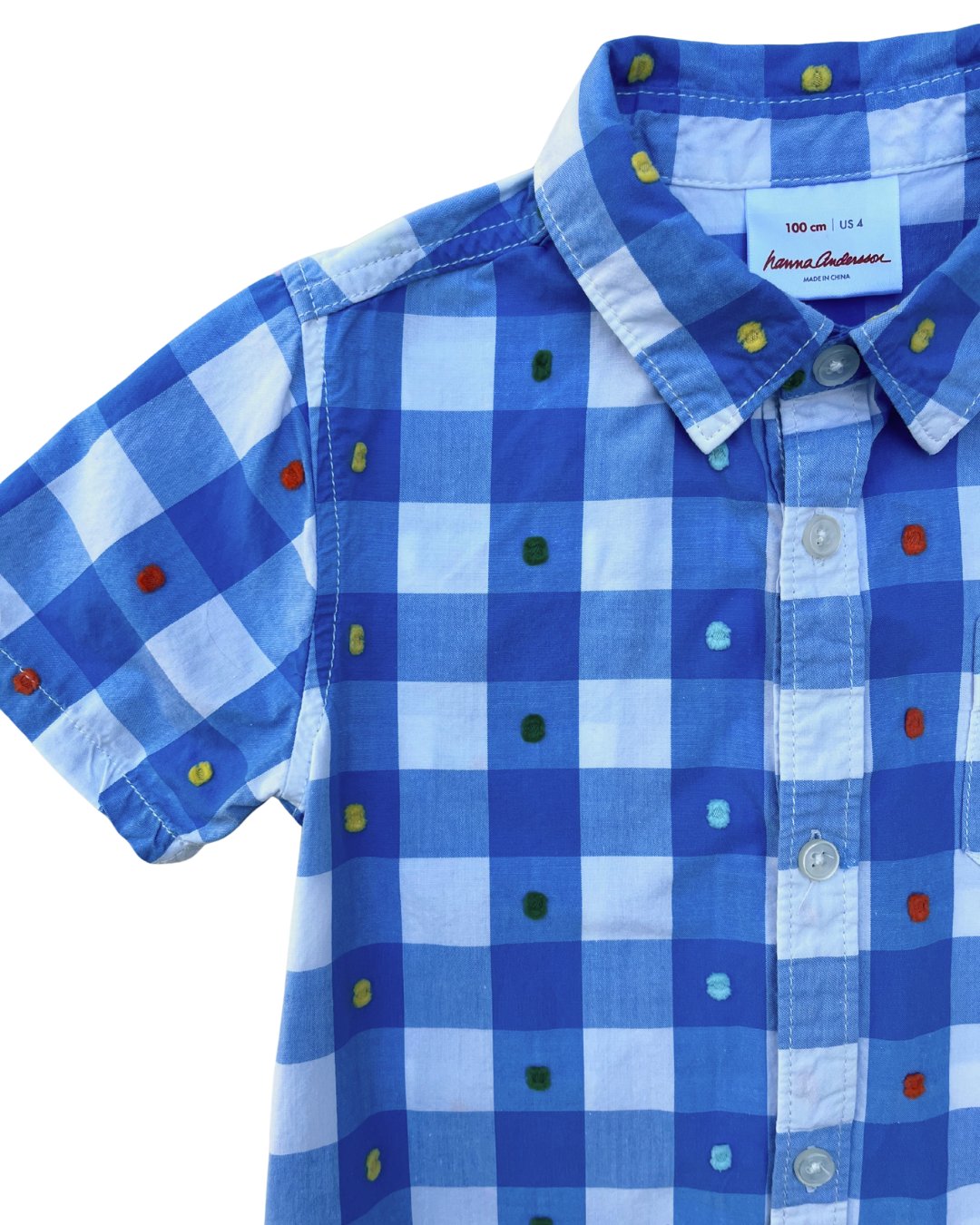 Hanna Andersson Plaid Polka Dot Short Sleeve Button Up-4T