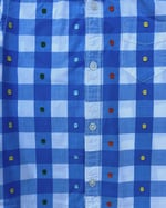 Darling Hanna Andersson plaid button up with multicolored embroidered polka dots. 100% cotton.