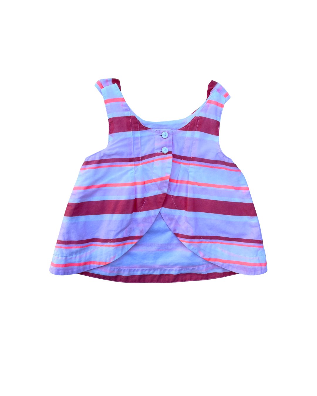 Pink striped top from Janie and Jack with adorable bow details on shoulders, pleats and a tulip style back. 100% cotton.