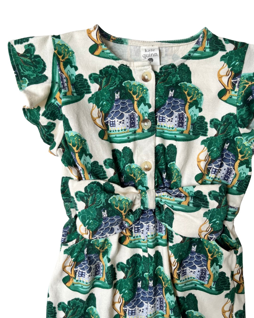 Such a stunning limited edition print! This Kate Quinn romper features a bow on the front, pockets and cap sleeves. What a cutie! 100% organic cotton.