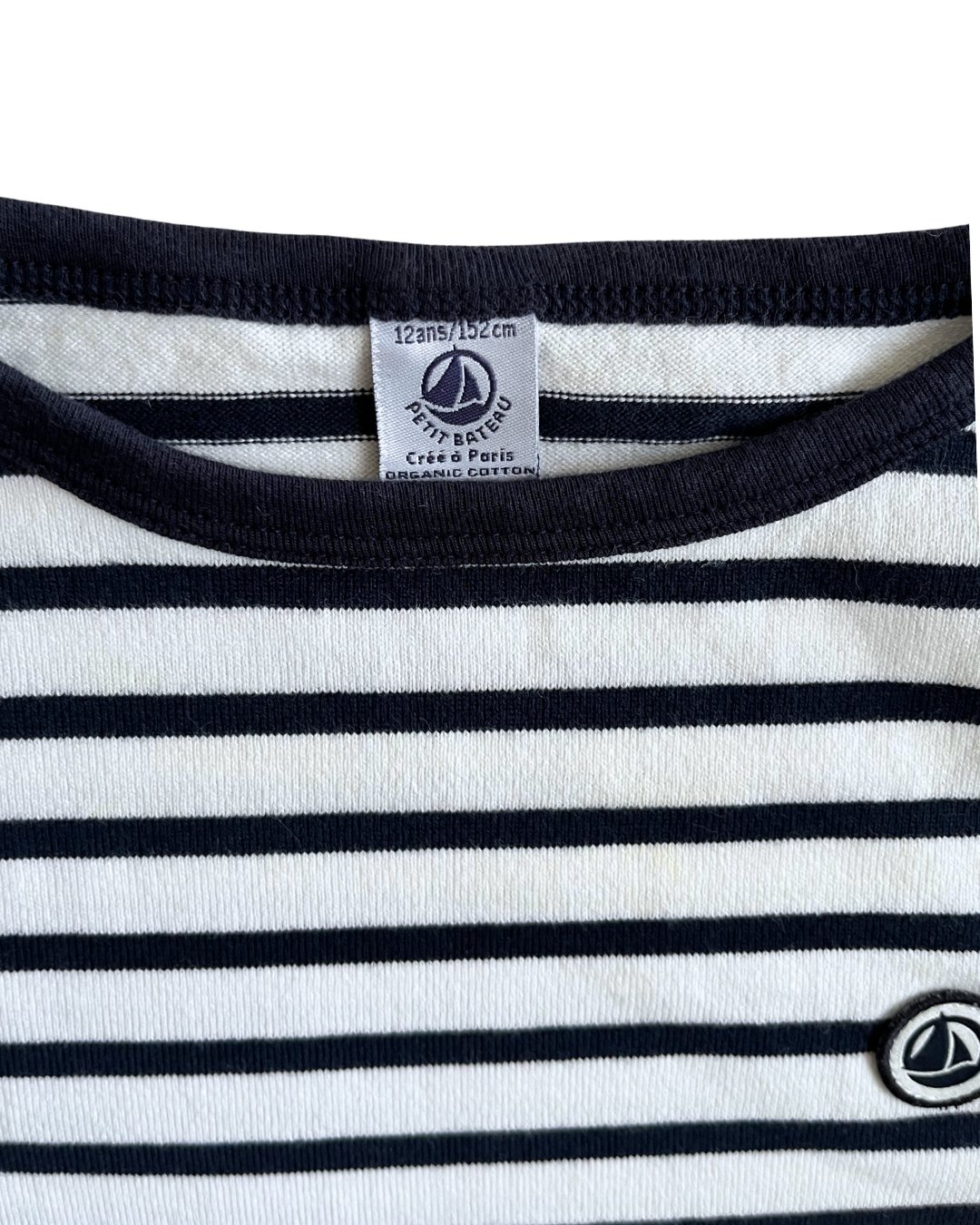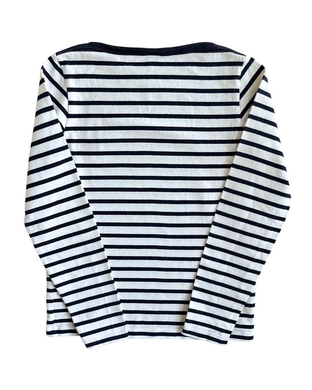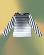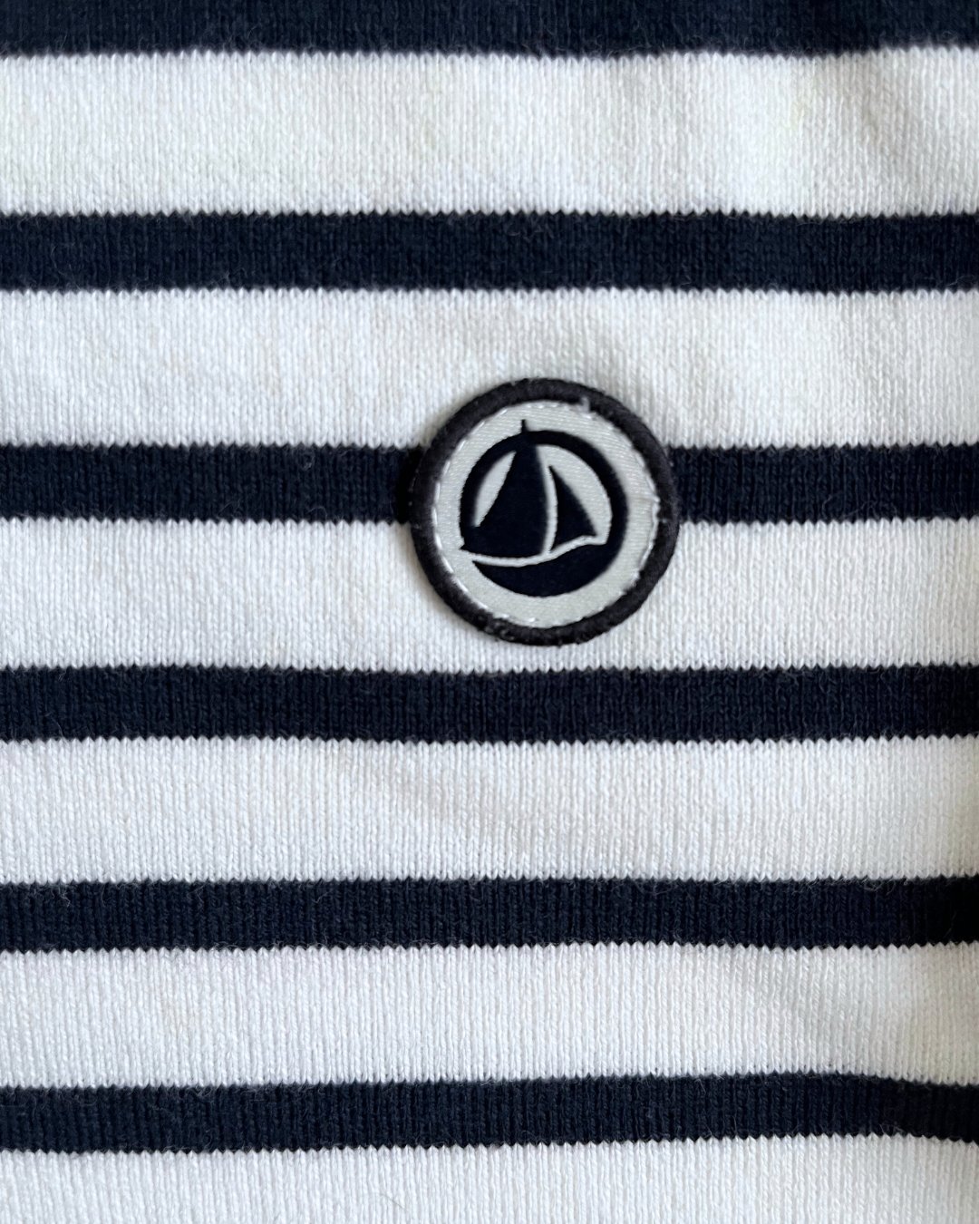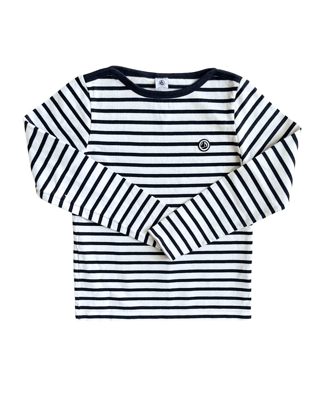 Lovely thick, heavyweight cotton long sleeve dark navy striped t-shirt from French brand, Petit Bateau. A perfect staple! 100% organic cotton.