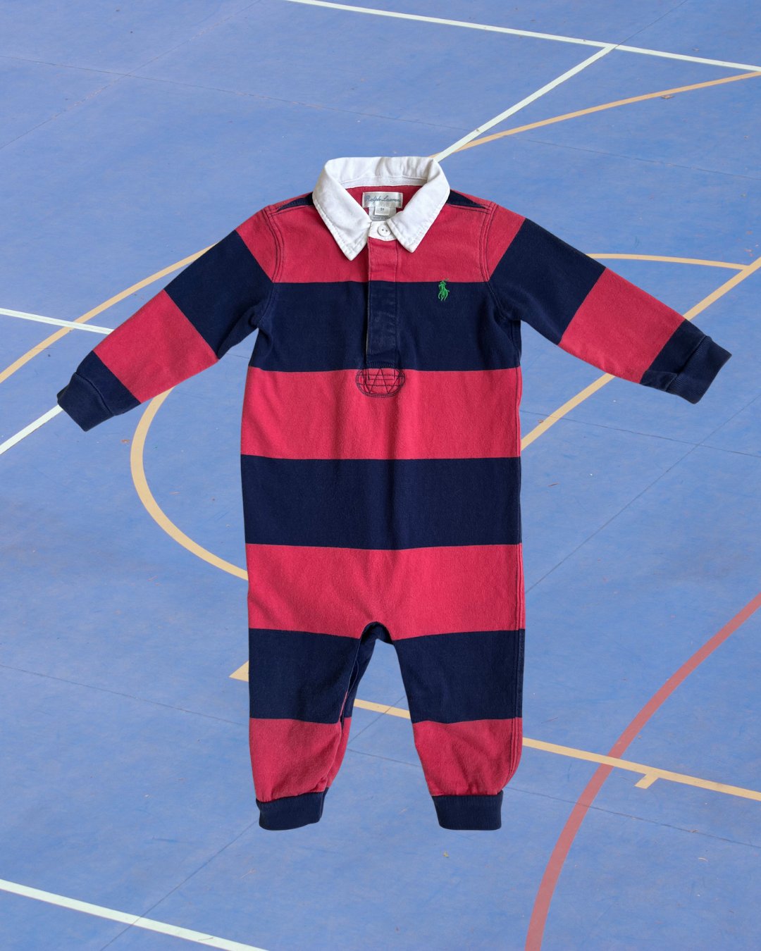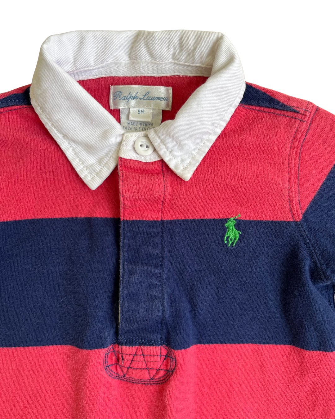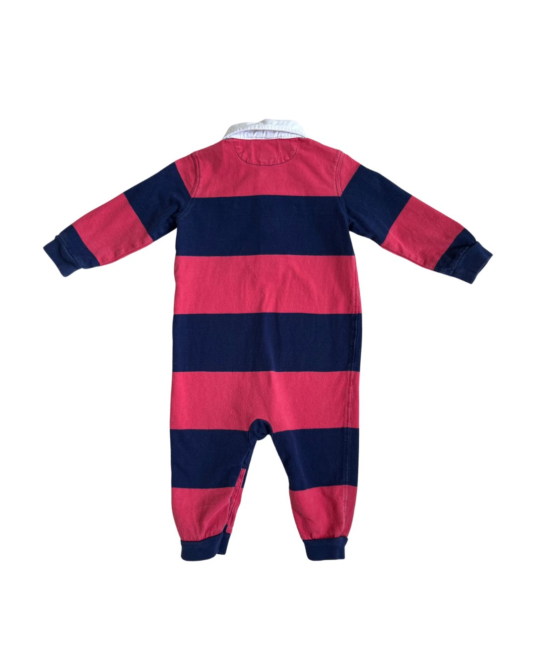 Absolutely love this rugby style Ralph Lauren coverall with salmon and navy stripes. 100% cotton.