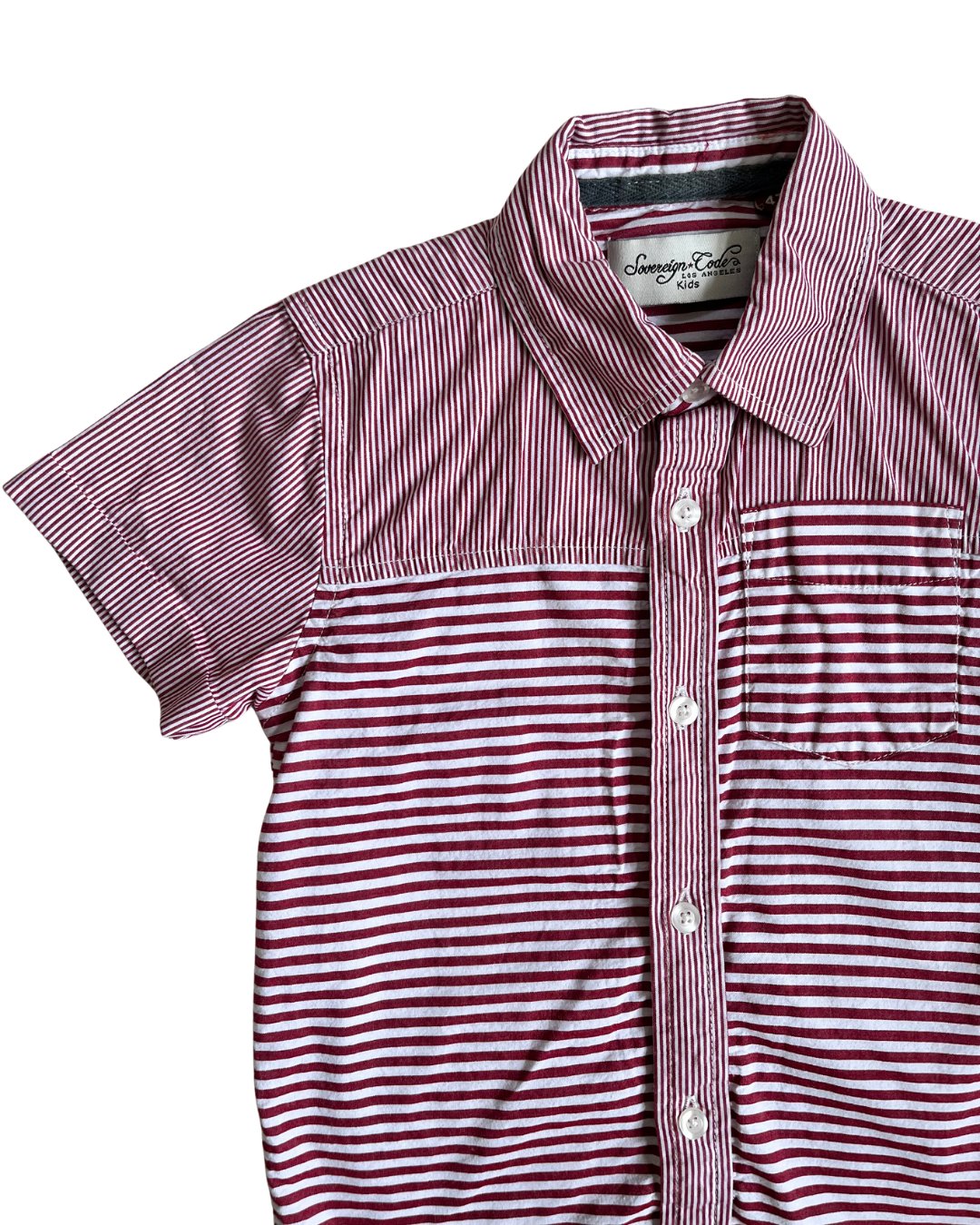 Striped red short sleeve button up from Sovereign Code LA Kids. So coastal! 100% cotton.