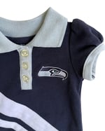 Darling Seahawks dress with cap sleeves, too cute! 55% cotton, 45% poly.