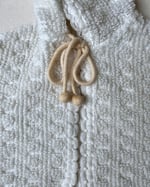 This adorable hooded white boucle vintage poncho is just too perfect for Spring! Drawstring tie closure, with baubles. Small stain on interior of hood, see photos.